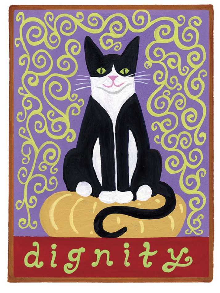 This little cat taught me a great deal about dignity. When I found her living on a city street and eating from a dumpster, she still nonetheless spotlessly cleaned herself. Once she let me bring her inside and we tamed each other, she taught me the fine skill cats have for always finding the greatest comfort in every situation. To know that one deserves to have the best of everything and then to allow oneself to relax completely into the comfort of this knowledge is to own up to ones own dignity. Every cat knows how to bask in the sunlight and you can learn this, too.