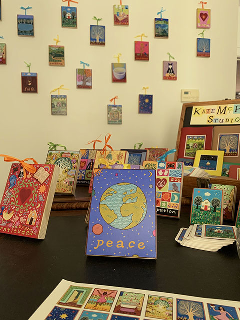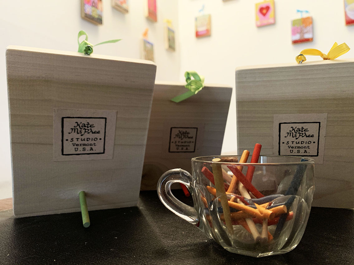 For the holidays, I have new plaques listed in my shop here: https://katemcphee.bigcartel.com/. These are a new version of wooden plaques that can hang on the wall or stand up with a little peg that comes with each one and fits in the back. I am listing the plaques as they are made to avoid a backlog of orders prior to the holidays, so the ones shown are ready to ship or pickup locally. More designs available by special order but do so soon if you want holiday delivery. Gift wrap on request. I have some pretty green boxes just the right size to fit these plaques. Get them while they last– signed, sealed, and delivered– all for 40 bucks! https://katemcphee.bigcartel.com/